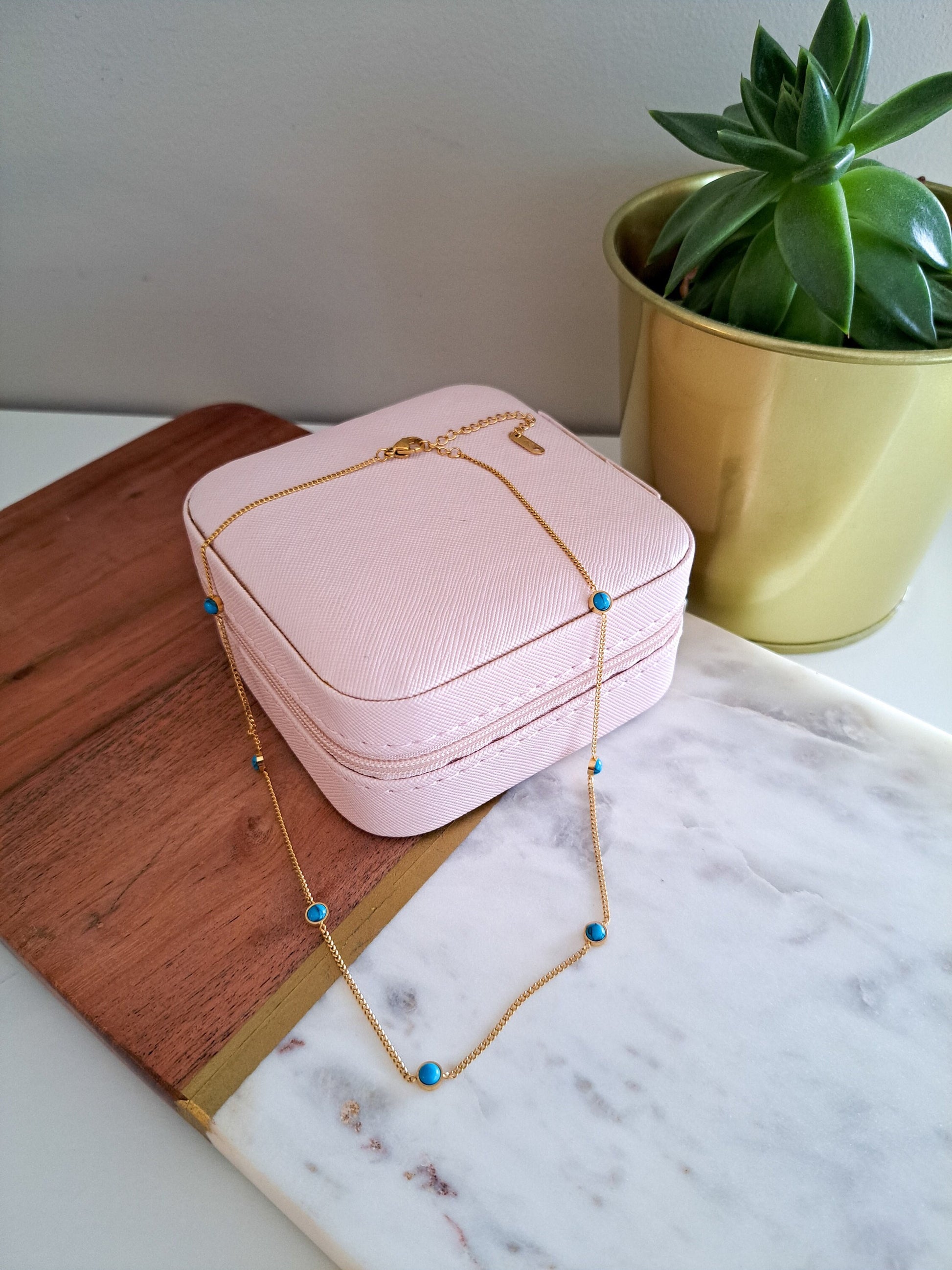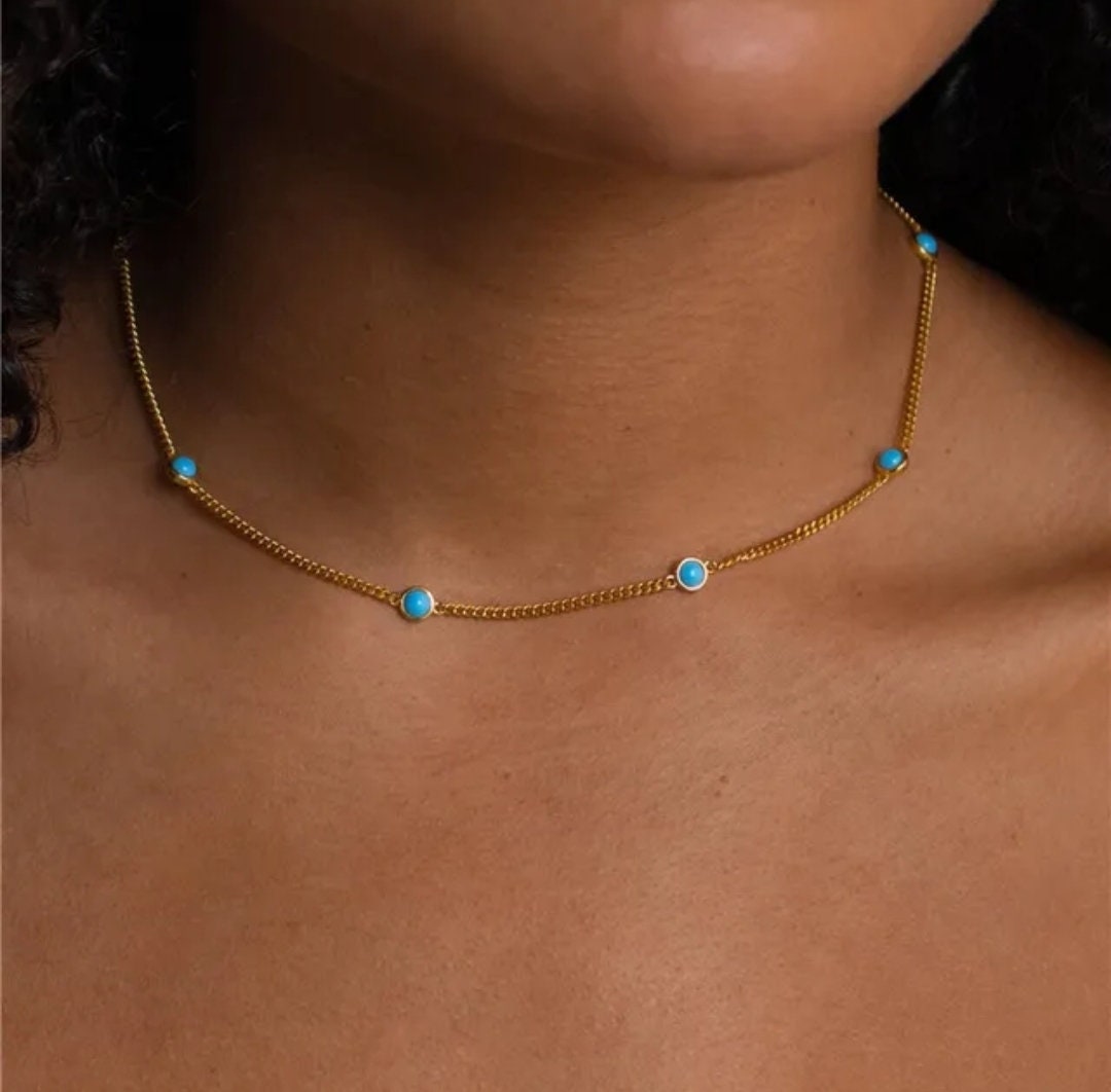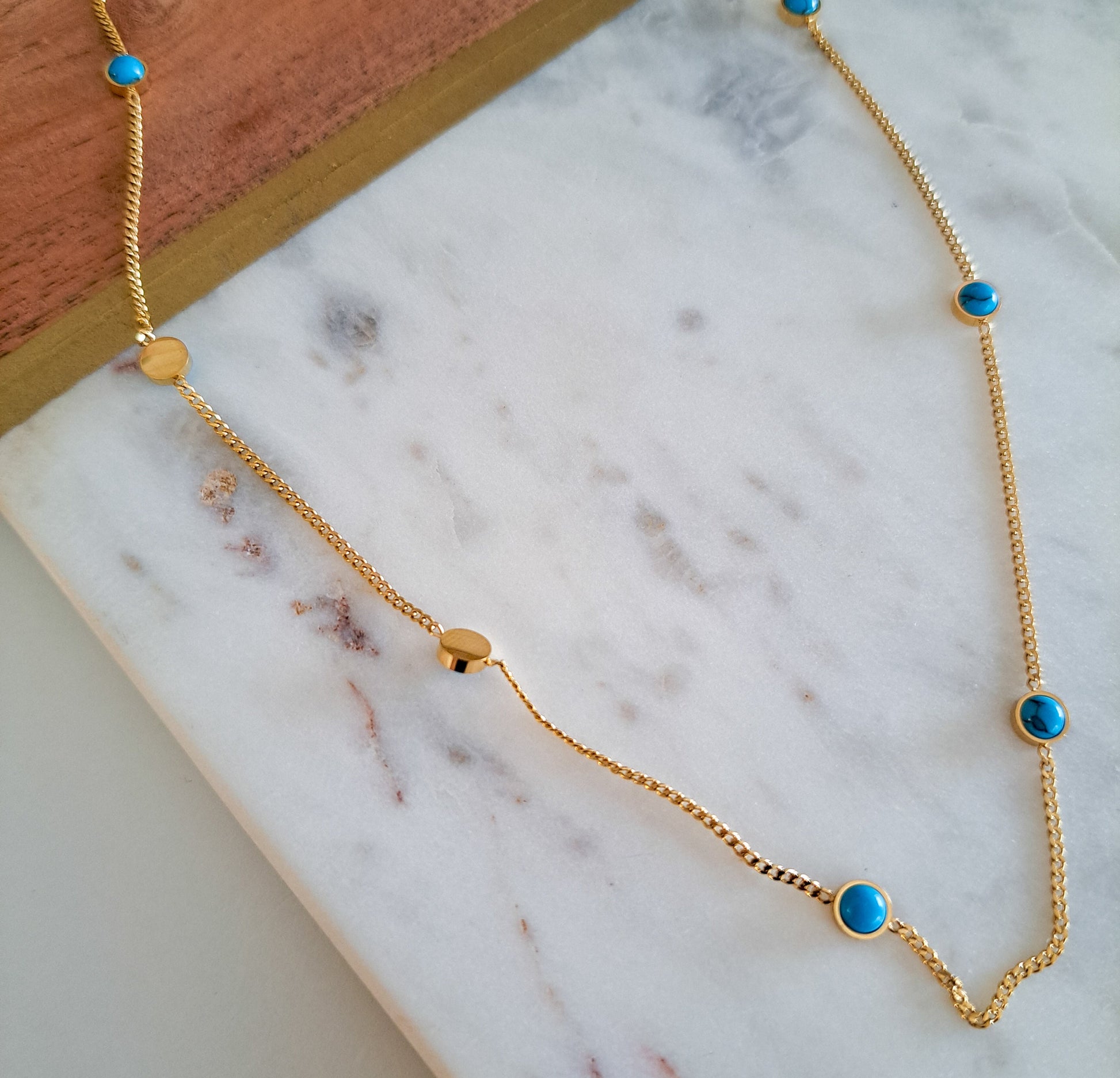 Turquoise Necklace, subtle pops of Turquoise with the gold chain is the perfect basic but elevated.