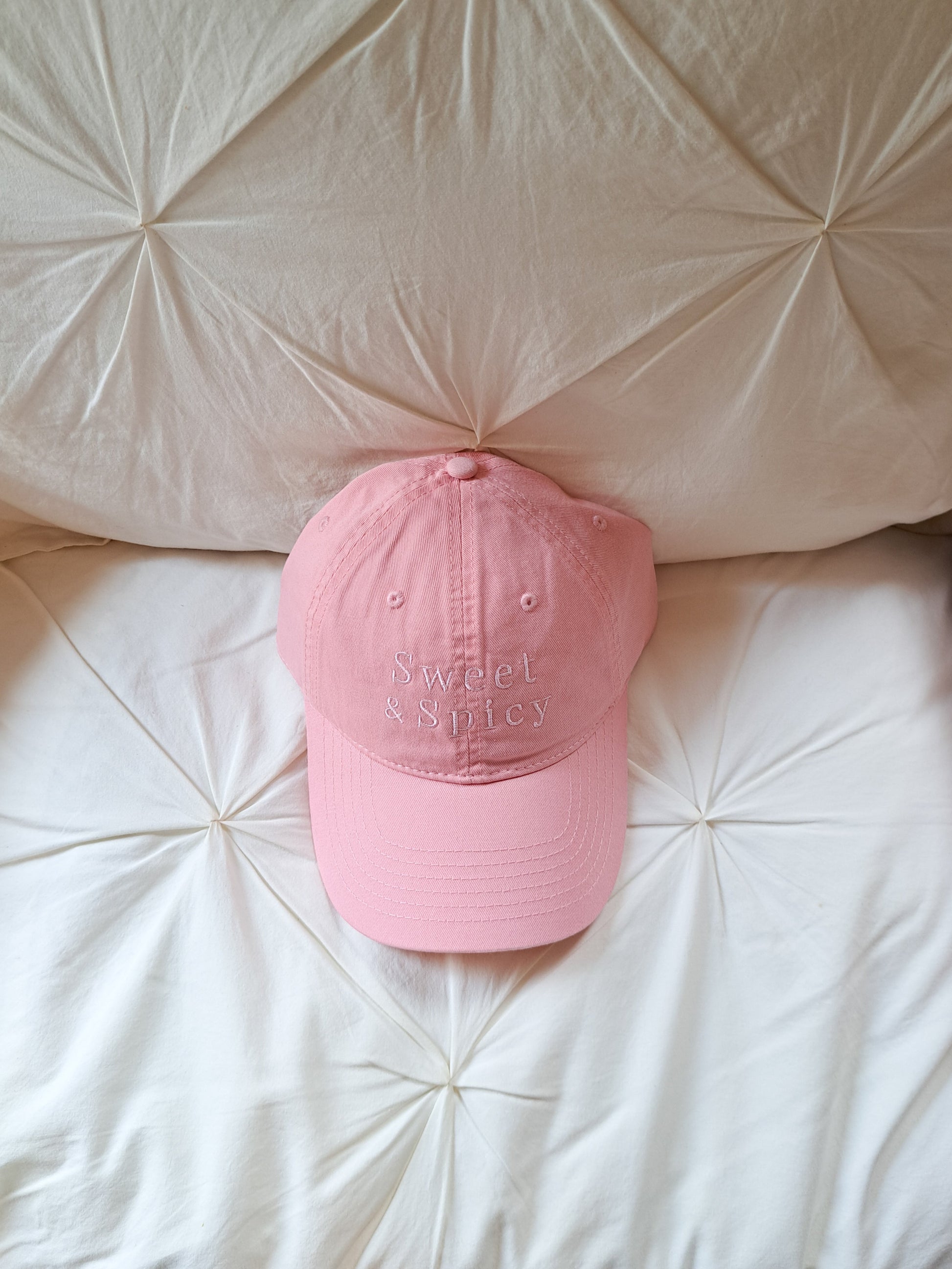 The perfect monochromatic hat. Our signature Sweet and Spicy pink colour with pink embroidery gives the perfect pop of colour to your outfit. A fun hat to run to the farmers market in, or have a day with your friends -going to yoga and grabbing a coffee after.